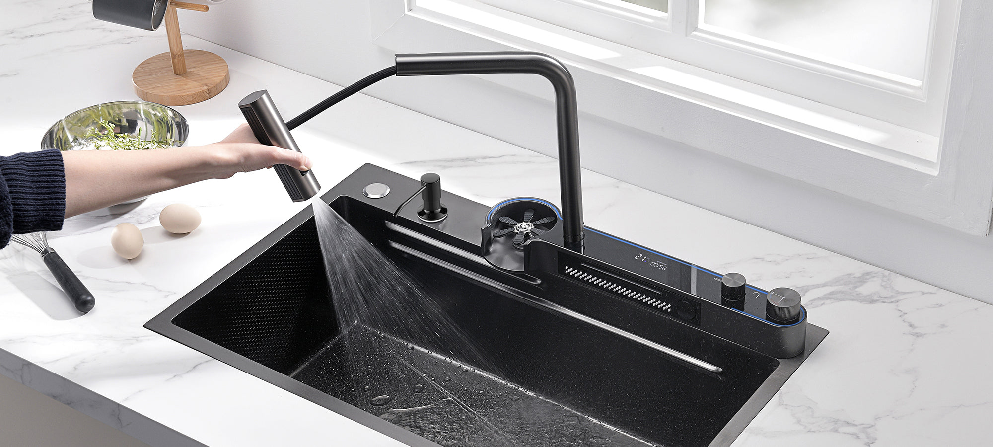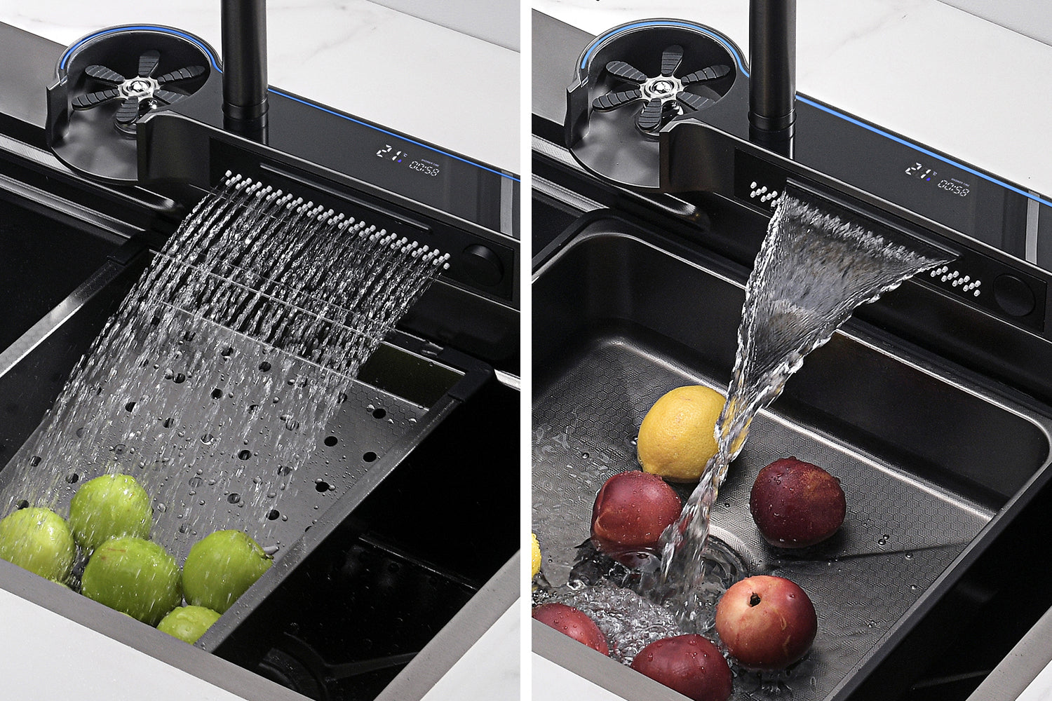 سینک ظرفشویی آبشاری دوددی مشکی ضد خش لانه زنبوری HUADIAO
